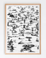 Black and White Australian Beach Art Print of the iconic Bondi Beach, Sydney Australia.
