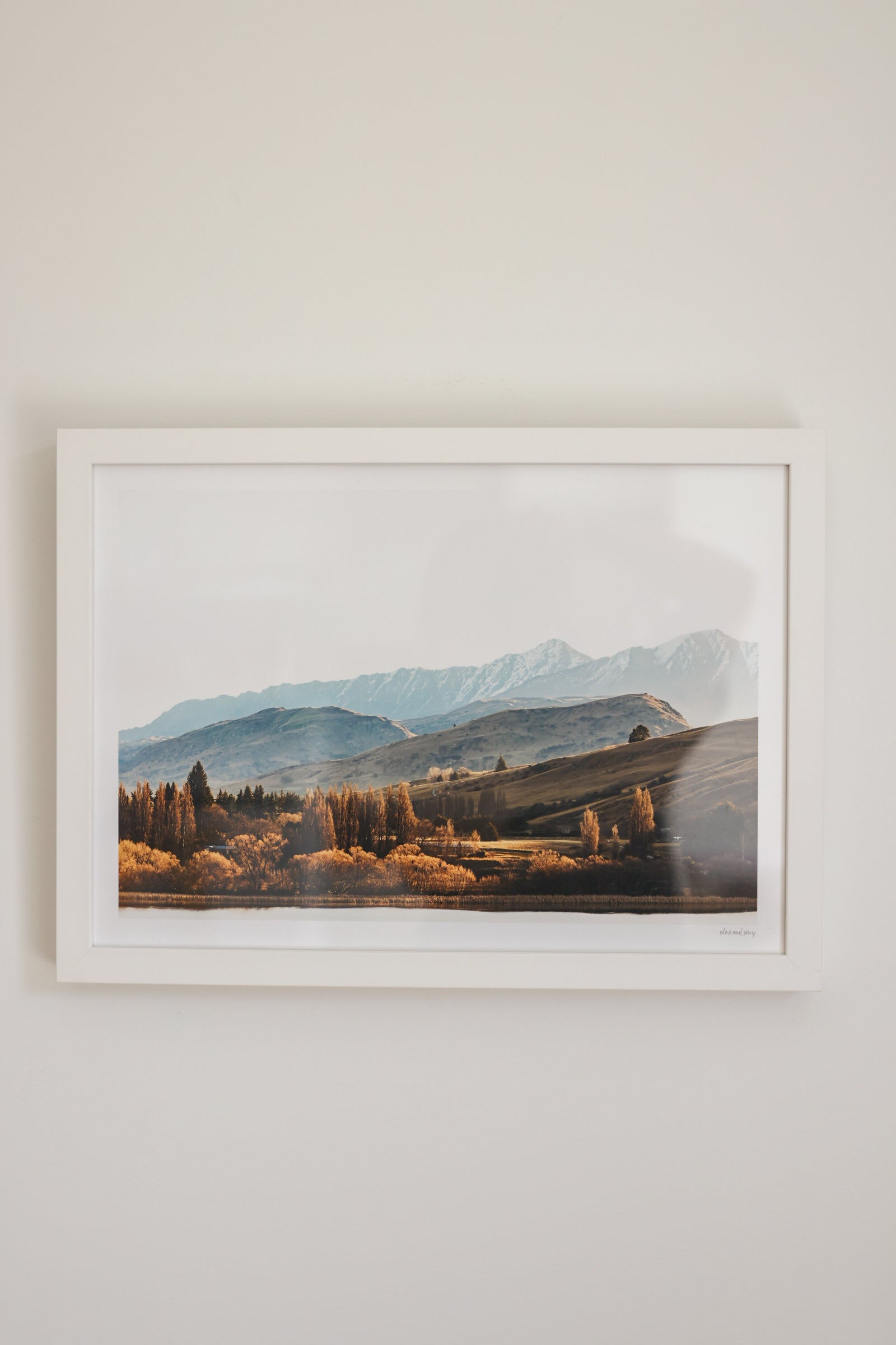 One of our bestselling images captured at Lake Hayes, Queenstown - printed on paper with a white frame and standard glass.