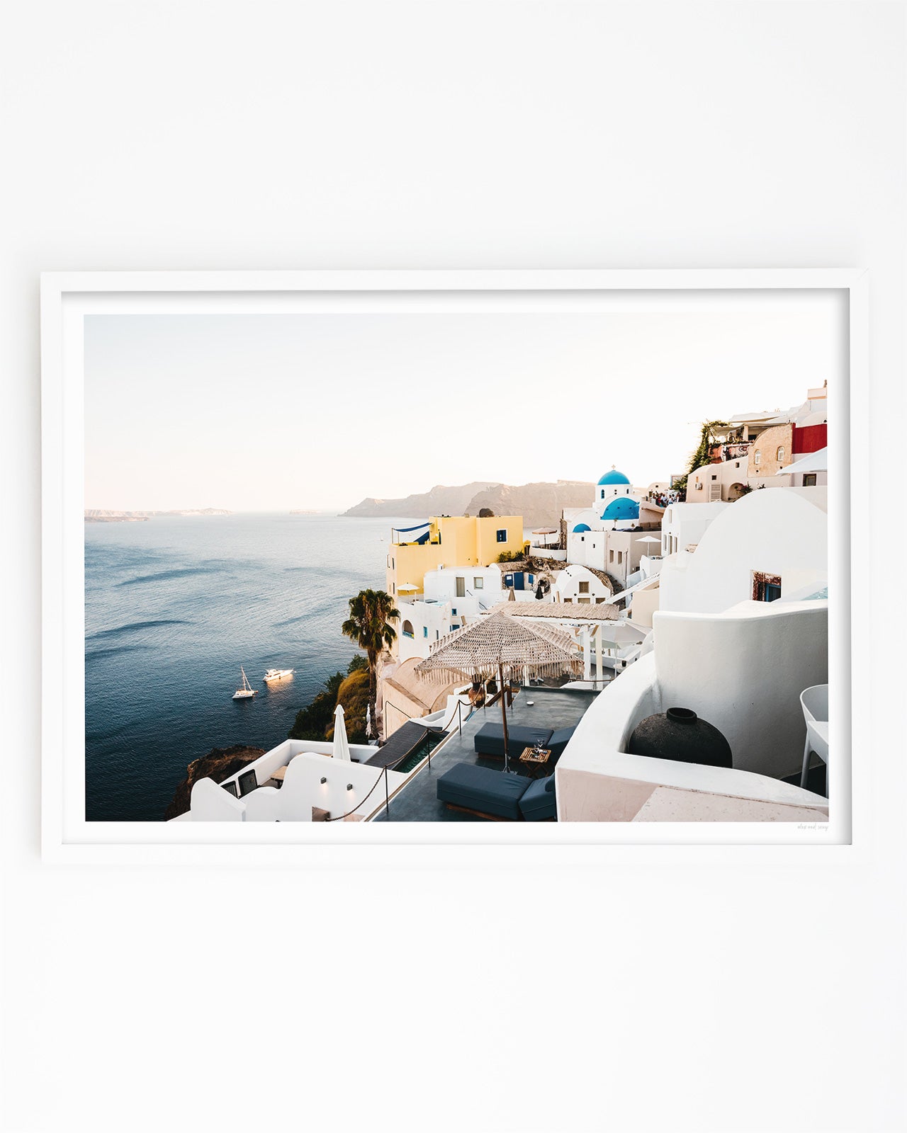Get lost in the soft Mediterranean light and sweeping coastal views of Santorini Island. Perfect for lovers of travel, design, and the beauty of the Greek islands.